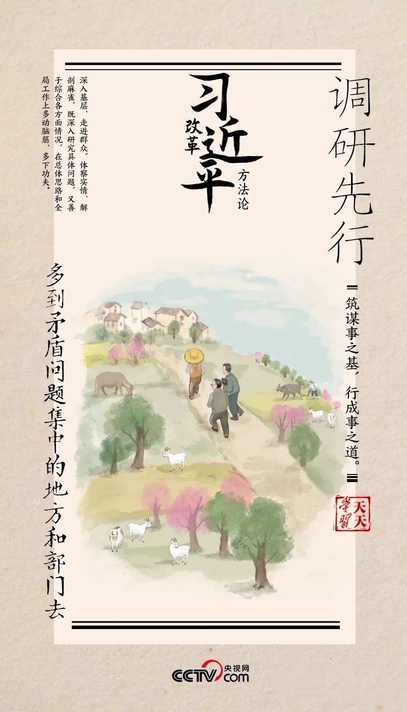 “調(diào)查研究是謀事之基、成事之道。沒有調(diào)查,就沒有發(fā)言權(quán),更沒有決策權(quán)?!?/p> 2013年,習(xí)近平總書記在武漢召開部分省市負(fù)責(zé)人座談會時(shí)指出,研究、思考、確定全面深化改革的思路和重大舉措,刻舟求劍不行,閉門造車不行,異想天開更不行,必須進(jìn)行全面深入的調(diào)查研究。 《干在實(shí)處 走在前列》一書記錄了習(xí)近平對調(diào)查研究的深刻思考:“人的正確思想不是從天上掉下來的,不是頭腦里固有的,而是從實(shí)踐中來的。” 這實(shí)踐,指的就是調(diào)查研究。 1983年夏收后的一天,時(shí)任河北正定縣委書記的習(xí)近平拉上縣政府辦公室的工作人員說:“走,我們?nèi)フ胰肆牧??!?/p> 兩個(gè)人騎著自行車來到縣城附近的三角村村外,十來個(gè)村民正在田間鋤草、間苗??吹降仡^還放著幾把農(nóng)具,習(xí)近平擼起袖子,拿起鋤頭跟著大家熟練地干起來。 趁著歇晌的時(shí)候,習(xí)近平跟大家你一言我一語地嘮家常、聊生產(chǎn)。談到正定縣未來發(fā)展,村民暢所欲言:“三角村離縣城很近,種點(diǎn)兒經(jīng)濟(jì)作物供給縣城,不是更好嗎?” 習(xí)近平仔細(xì)聽完村民意見后說:“回去就認(rèn)真研究?!?/p>